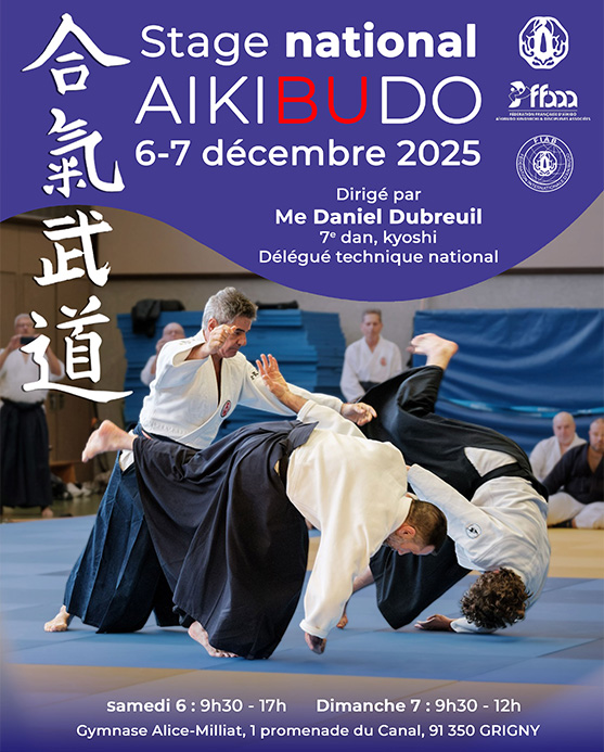 Les 6 et 7 décembre, Stage National Ile de France Aikibudo, dirigé par le DTN Maitre Daniel Dubreuil, 7ème Dan, Kyoshi. Réservez dès maintenant votre week-end.