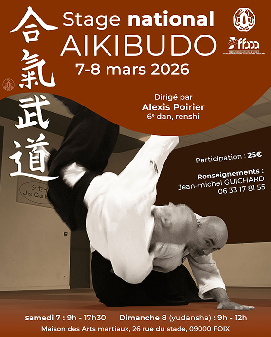 Les 7 et 8 mars, Stage National Occitanie Aikibudo, dirigé par Alexis Poirier, 6ème Dan, Renshi. Réservez dès maintenant votre week-end. La participation au stage est de 25€