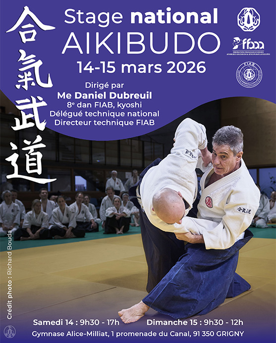 Les 14 et 15 mars, Stage National Ile-de-France Aikibudo, dirigé par Maître Daniel Dubreuil, 8ème Dan FIAB, Kyoshi. Réservez dès maintenant votre week-end.